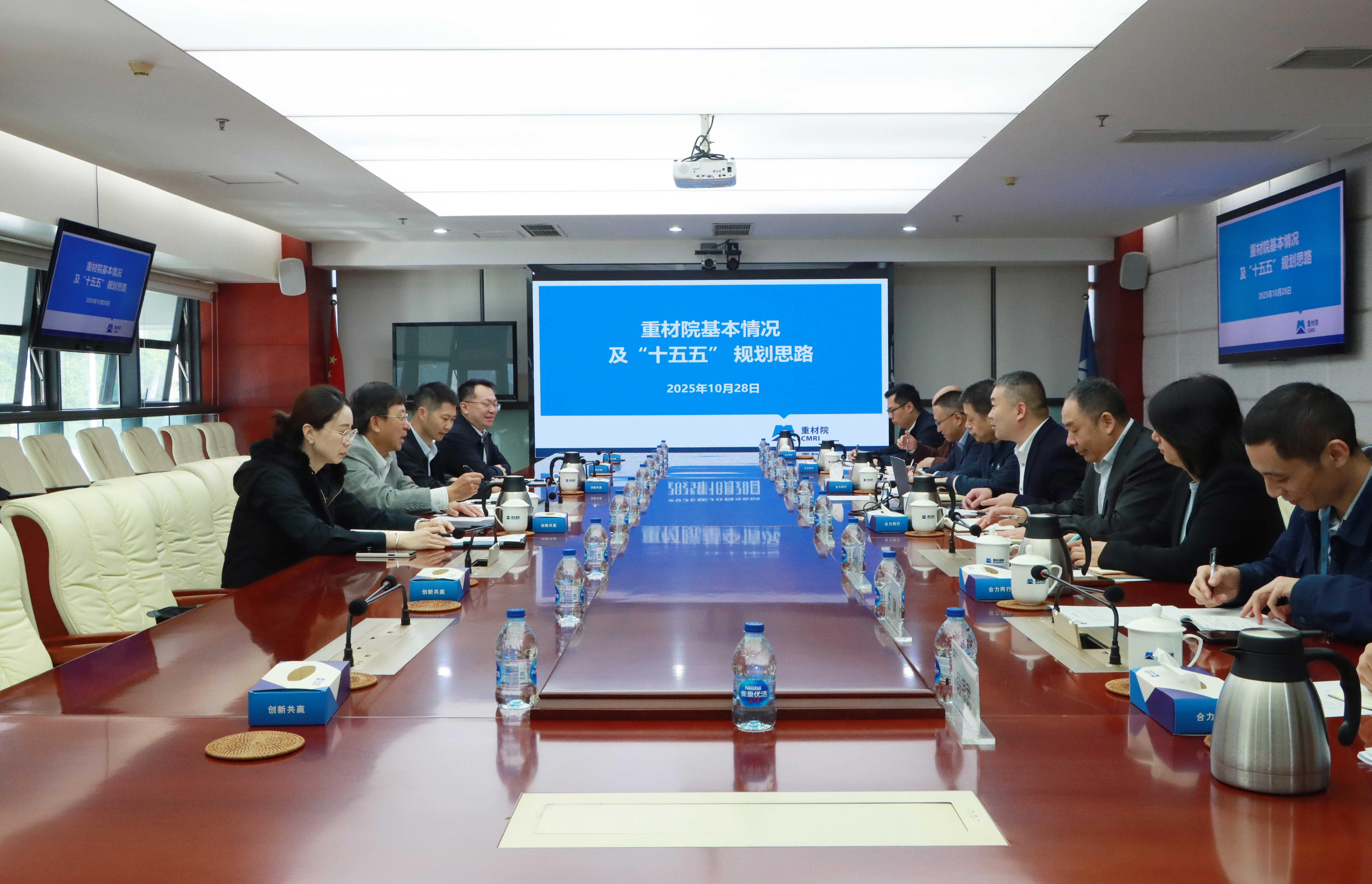 ????10月28日,國機集團戰略發展部部長王小虎一行蒞臨重材院調研指導“十五五”規劃編制工作,重材院黨委副書記、總經理吳保安主持接待并作詳細匯報。
